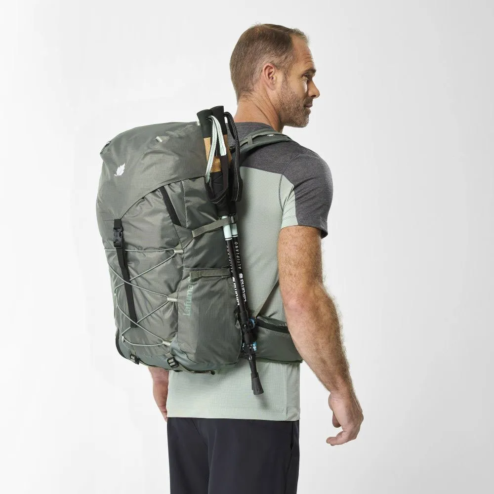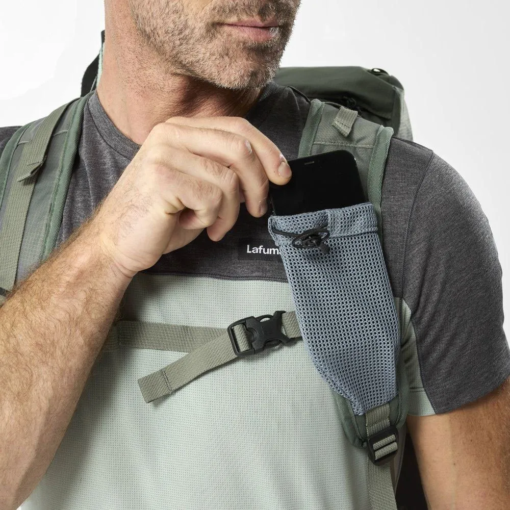 Conçu pour l’aventure en parcourant les sentiers, ce sac à dos au volume modulable (35 + 5 Litres) est majoritairement composé de matériaux recyclés. Ultra-fonctionnel, il ne pèse que 865 grammes et vous permet de garder votre téléphone à portée de main dans la poche sur la bandoulière, vos bâtons attachés sur le côté ou même une veste rentrée dans le cordon élastique réglable à l’avant. Avec une housse de pluie amovible et un compartiment pour un système d’hydratation pour vous garder en parfait état sans perdre votre rythme, ce modèle offre une organisation inégalée. Pour couronner le tout, le fond du sac est doté de sangles d’équipement et de quatre poches zippées, ainsi que de deux poches latérales extensibles.