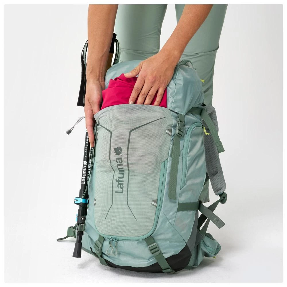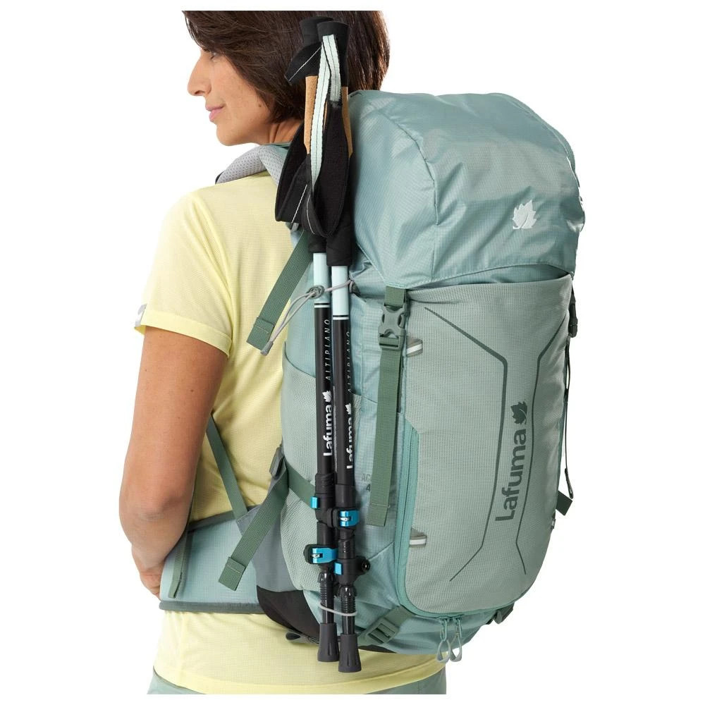 Le sac à dos pour femme Lafuma Access 40 permet de partir deux jours en randonnée avec l’équipement nécessaire. L’imperméabilité légère, la déperlance et la housse de pluie assure une bonne protection contre l’humidité, tandis que les bretelles ergonomiques adaptées à la morphologie féminine augmentent le confort. Des sangles porte-matériel sont intégrées sous le sac pour le sac de couchage et sur les côtés pour les bâtons de marche. Parmi les poches de ce modèle se trouvent une poche pour système d’hydratation, ainsi qu’une autre pour les lunettes de soleil et les objets de valeur.
