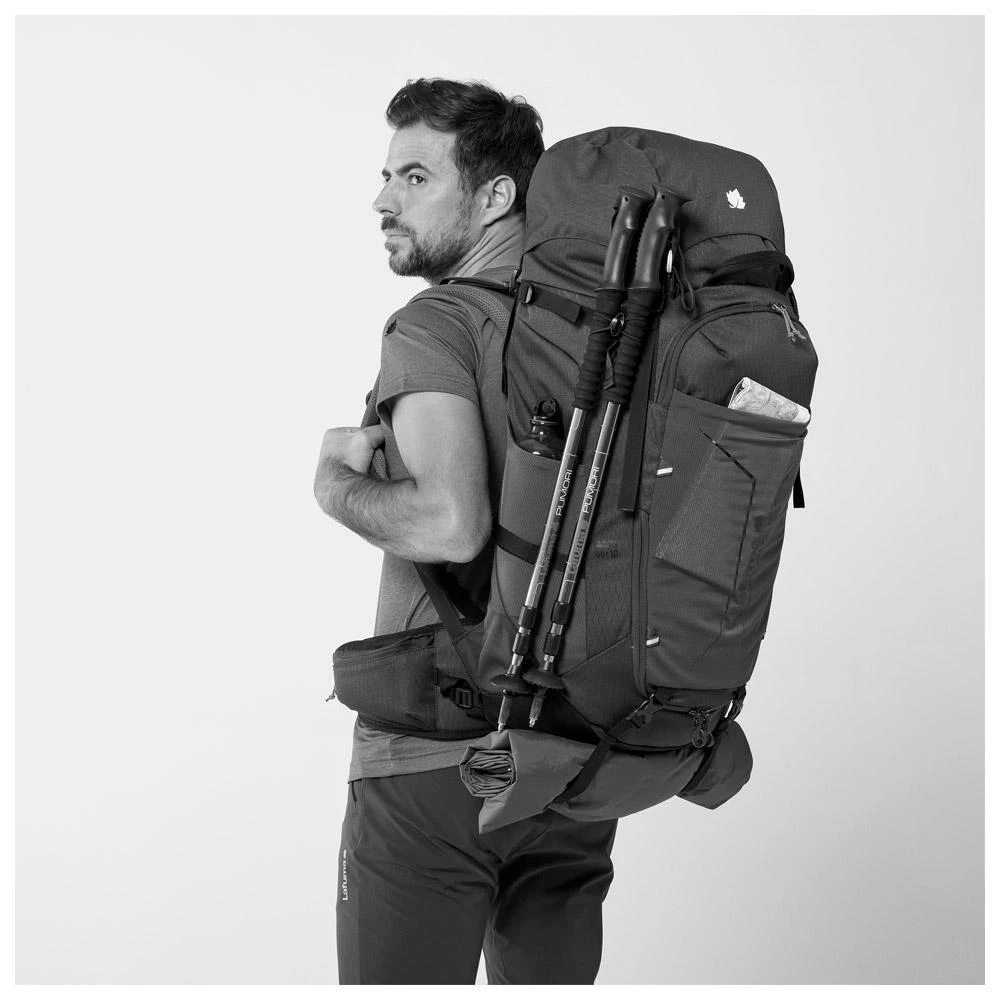 Conçu pour les randonnées de 3 jours ou plus, le sac à dos pour homme Lafuma Access 65+10 est un modèle de 65 litres de volume extensible à 75 litres. Imperméable et déperlant, il protège vos affaires de l’humidité si le temps se dégrade et les bretelles ergonomiques, la sangle de poitrine ainsi que la ceinture matelassée permettent une répartition du poids optimale pour plus de confort sur la durée. Les sangles latérales peuvent porter des bâtons, une poche est prévue pour y installer un système d’hydratation, deux autres sont prévues pour des documents et une caméra. Une housse de pluie est incluse afin de compléter la protection contre l’humidité si la pluie s’intensifie.