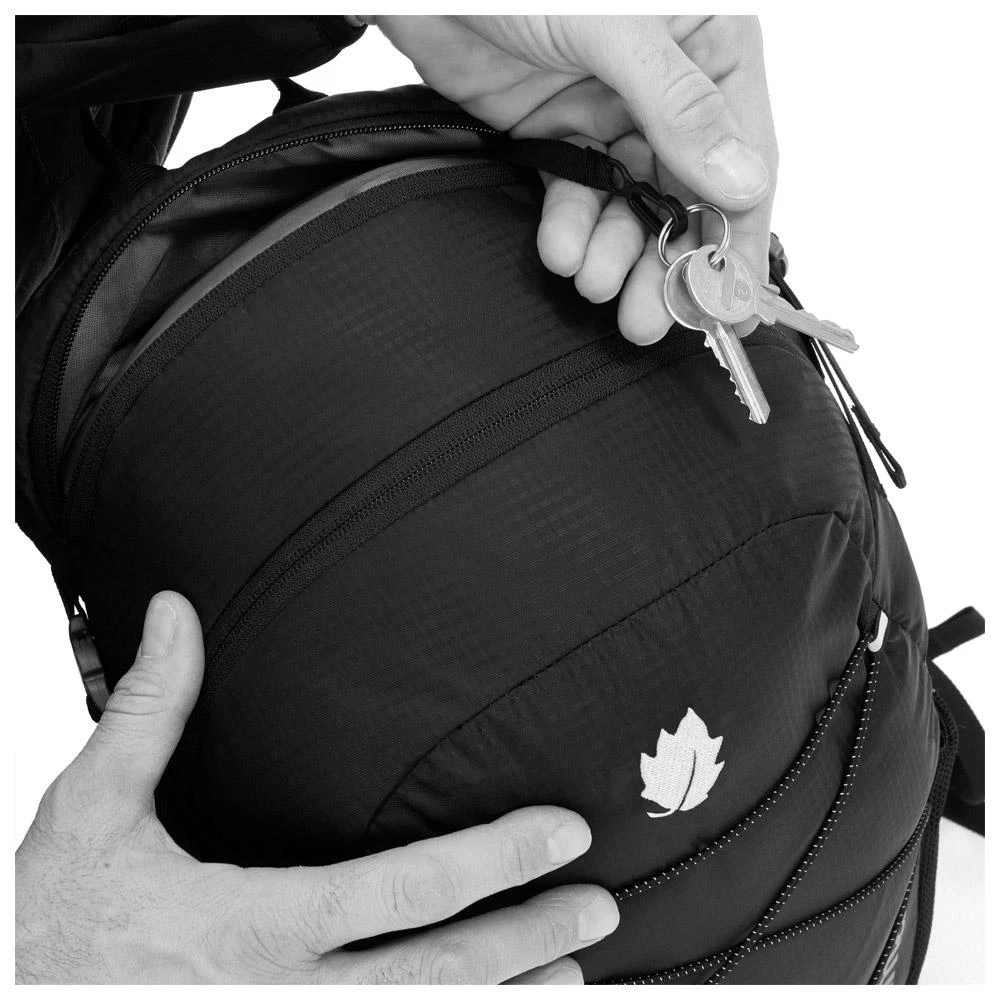 - Compatible système hydratation (système de fixation sur la bretelle et poche interne)